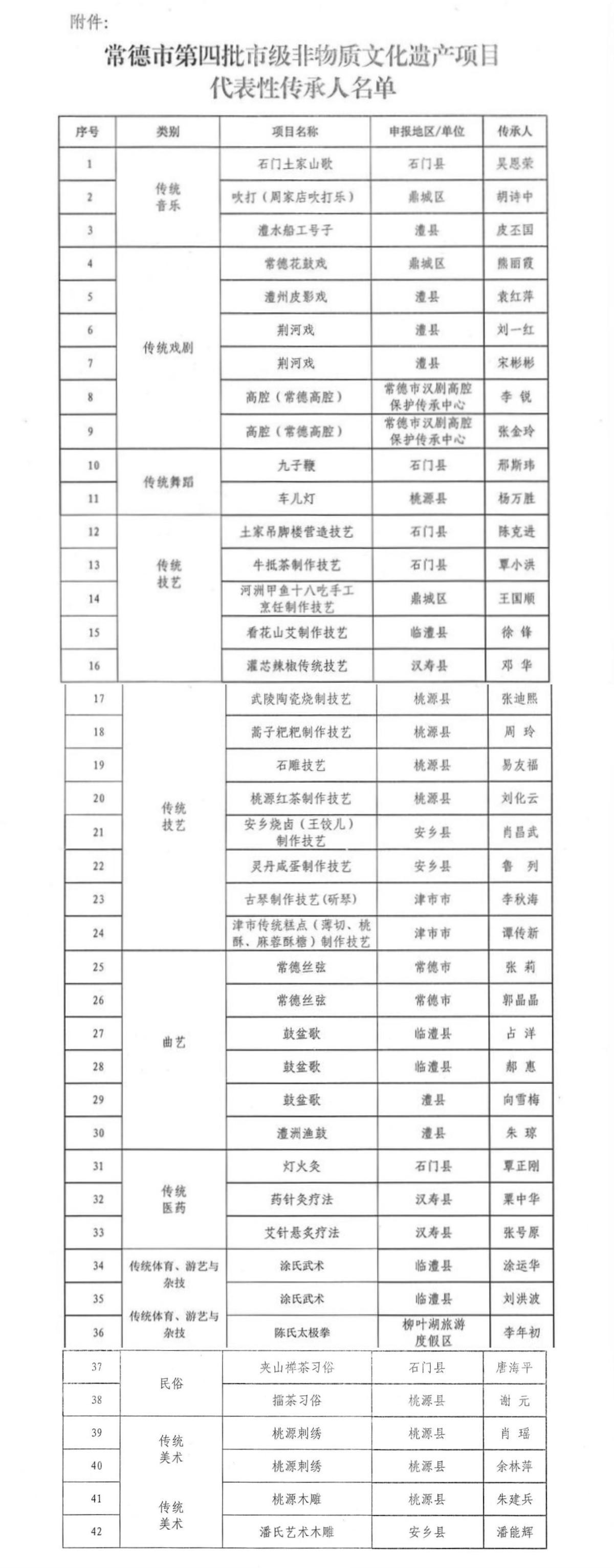 常德公布第四批市级非遗项目代表性传承人名单